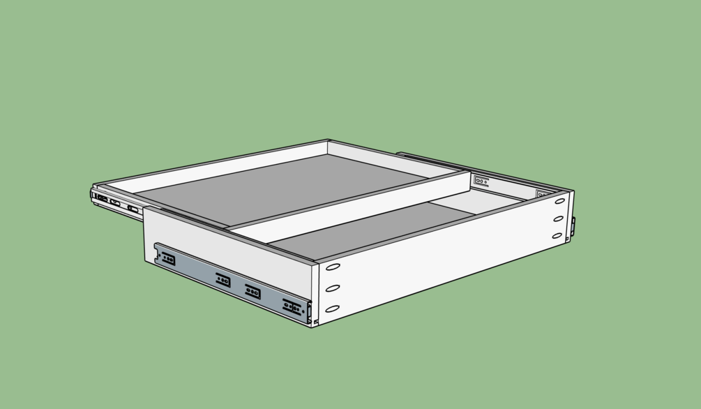 The build plans are drafted to accommodate a 36" frameless base cabinet drawer.